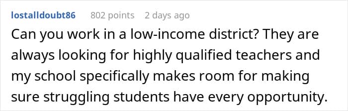 Regardless, this story serves as a reminder to not waste your time in a toxic environment and, just as importantly, why it’s vital to have a real and functional support system. If this teacher was saddled with bills and had no one to go to, unemployment would seem a lot more scary than it is.