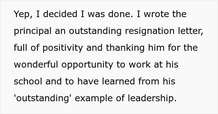 One teacher decided to take a principal’s threat at face value and wrote up a resignation letter