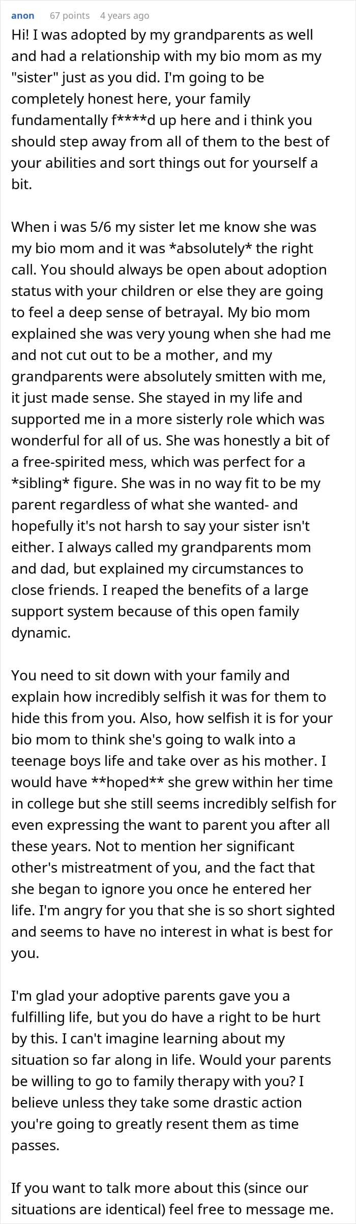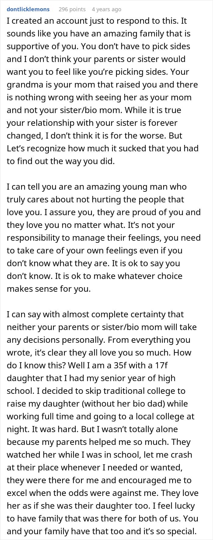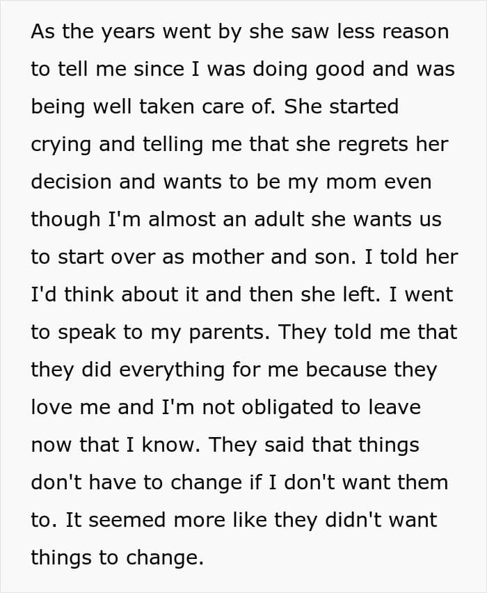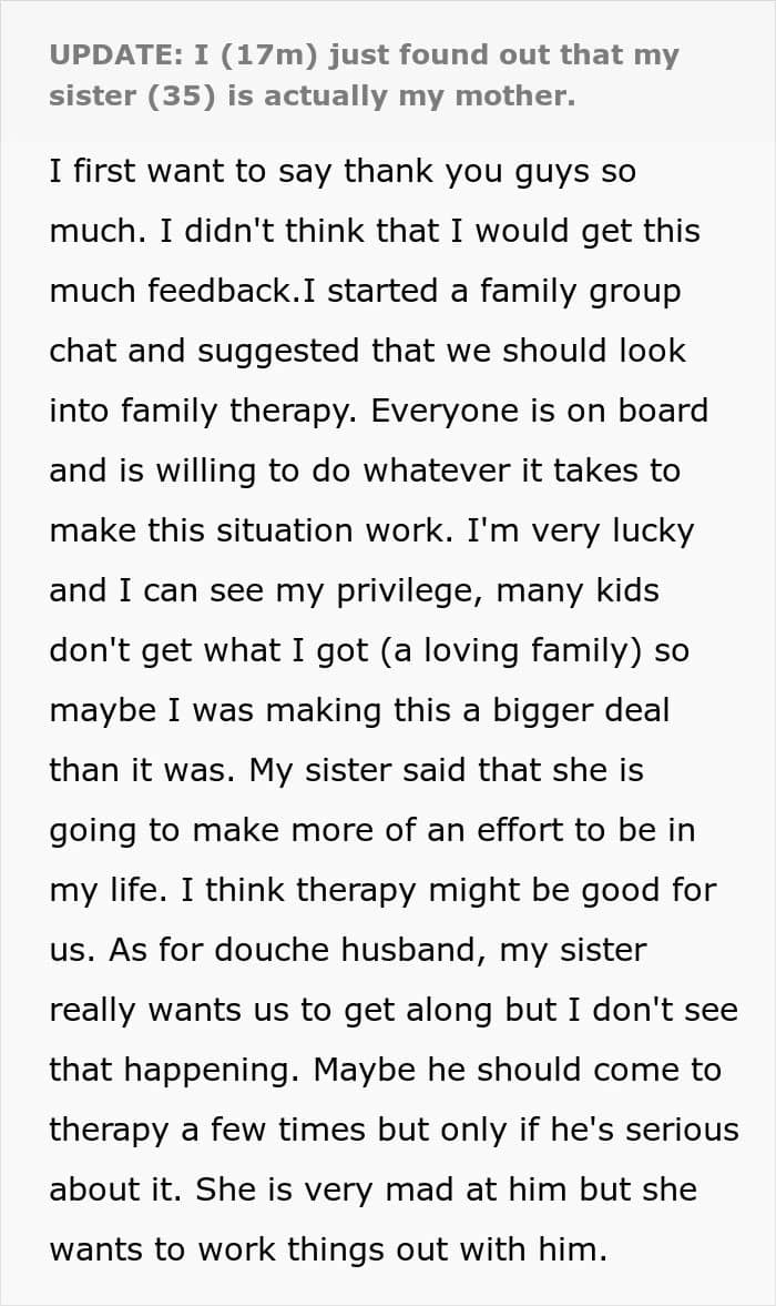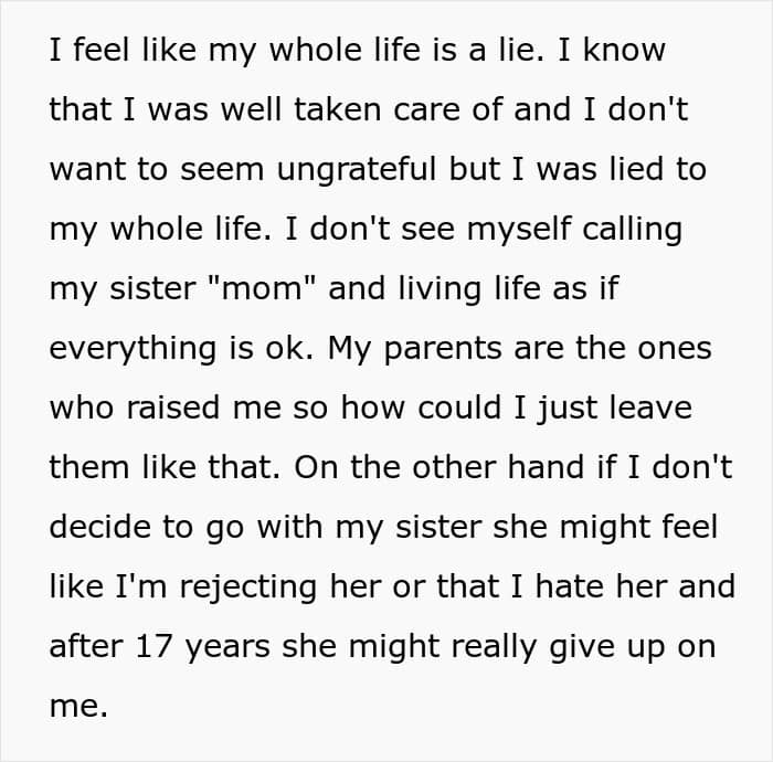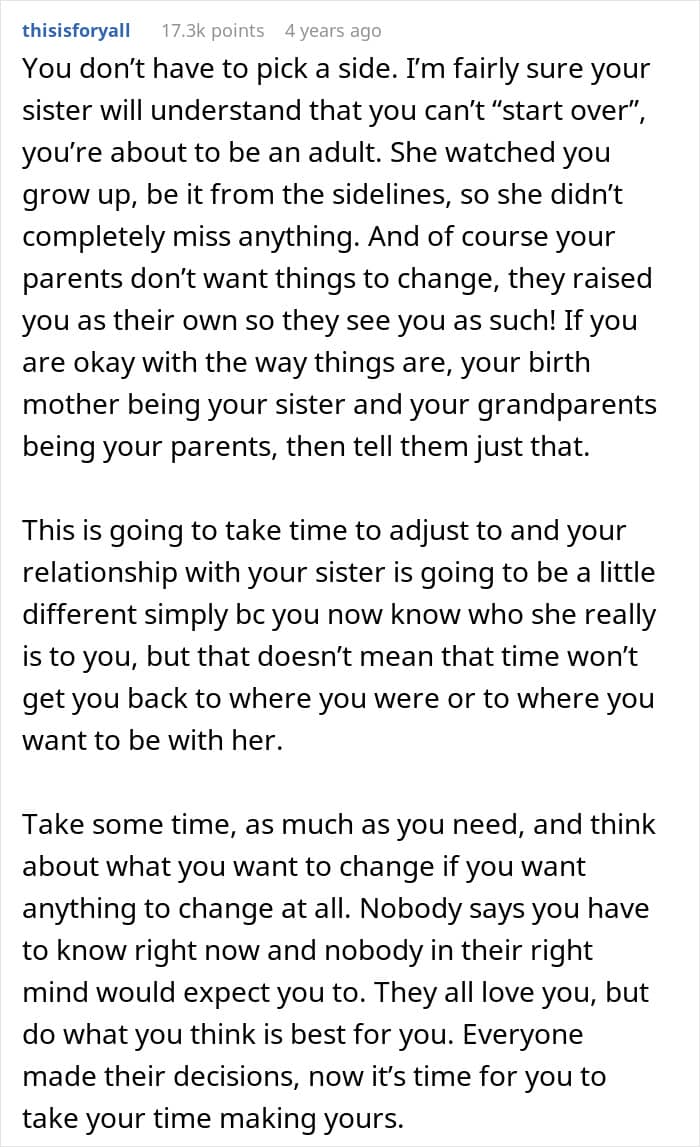 But one teen’s life was turned upside down when it was revealed that the woman he had always known as his older sister was actually his biological mother all along. Below, you’ll find all of the details that he posted on the Relationship Advice subreddit, as well as some of the replies concerned readers shared.