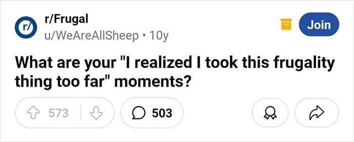 When your life becomes more difficult because of how cheap you are, it’s time to re-evaluate things.