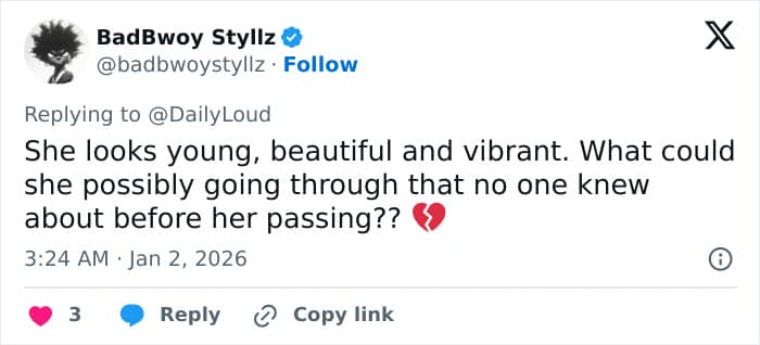 Authorities have not yet confirmed an official cause to explain Victoria’s passing or released additional details.