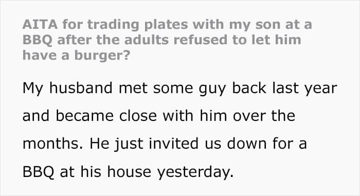 Like in this BBQ party that OP attended. The cook refused to give her son a burger just because he was a kid. So the mom had to switch plates with him, which made the host view her as the bad guy. Doesn’t sound fun, does it?