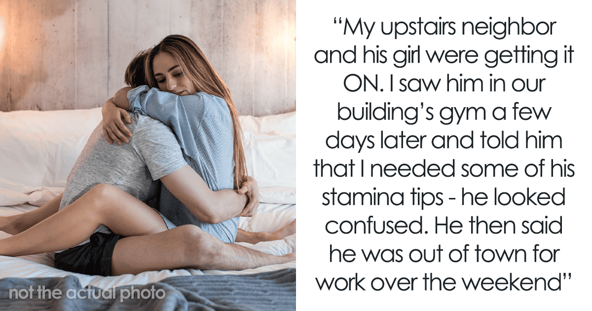 I know the couple and am cool with the guy so it didnt bother me much since it was a decent hour. I saw him in our building’s gym a few days later and told him that I needed some of his stamina tips- he looked confused and I told him that I heard him getting it on over the weekend and that I was sure his girl would never leave him after how she sounded.