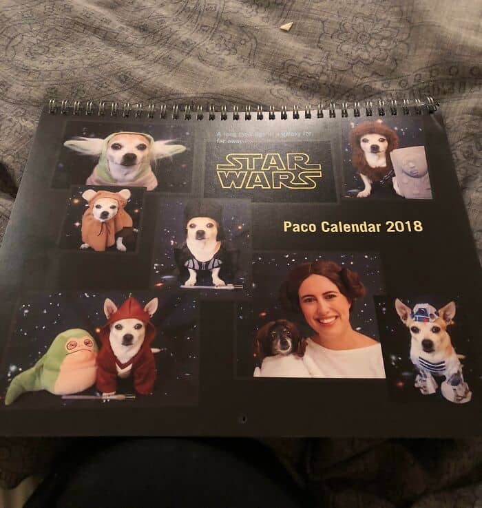 #5 My White Elephant Gift Was My Aunt’s Annual Paco Calendar. 12 Months Of Her Favorite Chihuahua, Now The Star Wars Edition
