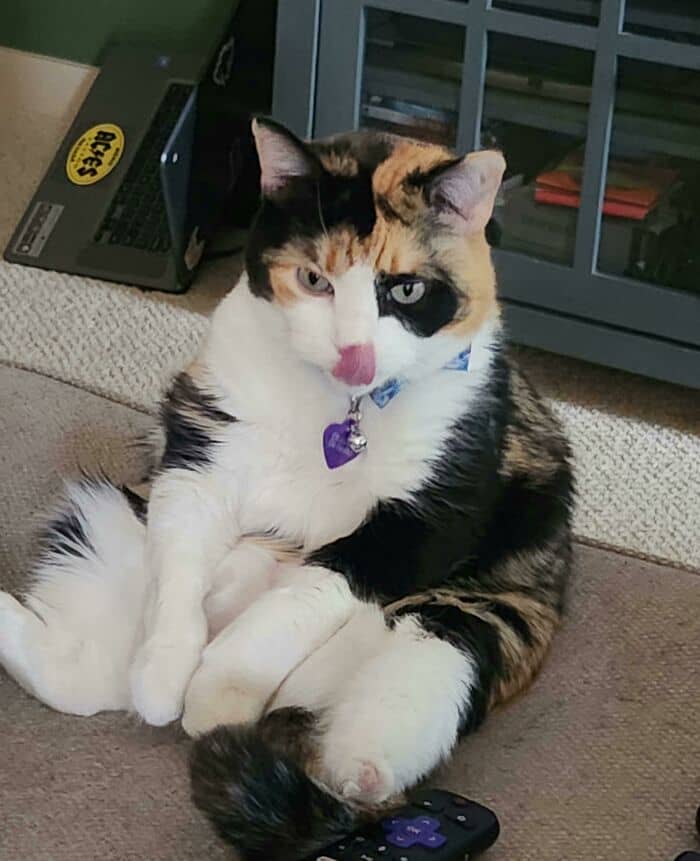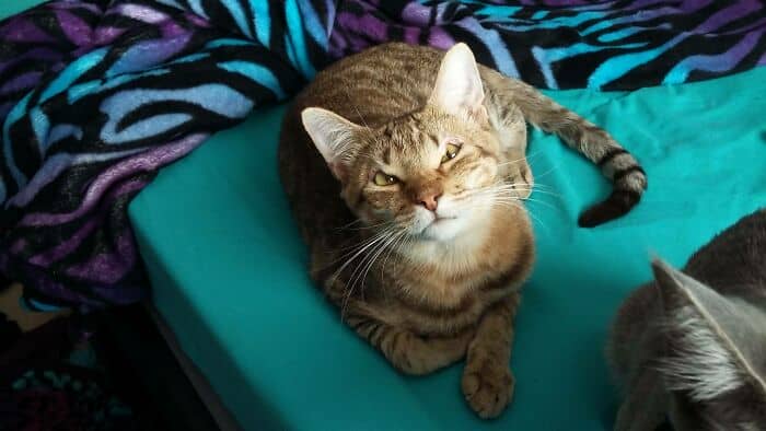 #87 This Is Cali. She Was Born With 3.5 Legs And Is The Sweetest Cat I’ve Ever Known. She Is A Certified Derpy Princess
