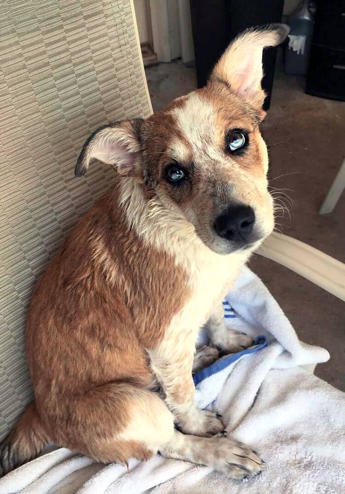 #80 My Red Heeler Mix Puppy Has Sectoral Heterochromia That Runs Straight Through The Middle Of Her Eye, Giving Her A Half-Brown And Half-Blue Iris