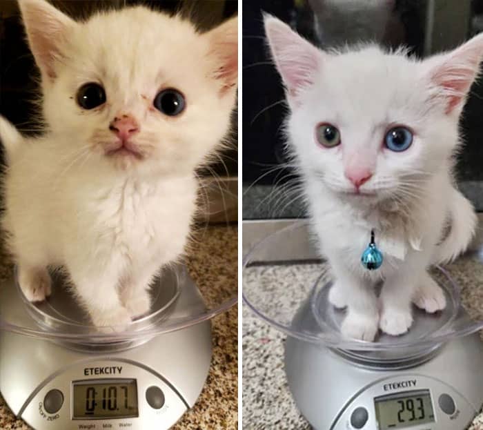 Winter is the runt of her litter, and she has a fast metabolism, but she’s growing up big and strong. Loving her heterochromia. And yes she can hear from both ears. We got her checked.