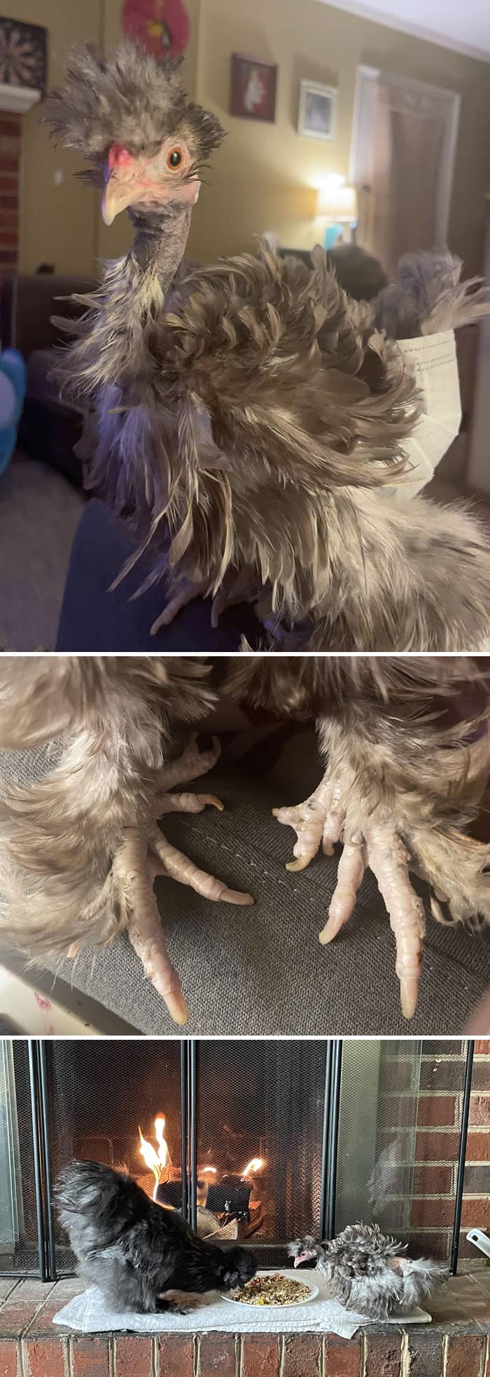This is my sweet lady, Matilda. She is a naked neck, frizzle, silkie mutt, who I believe is inbred and also has dwarfism. I adopted her from Craigslist. She got terribly attacked by another hen of mine, so I’ve been keeping her inside until her feathers grow back. During this time I noticed a plethora of ridiculous things with her: her skin and toes were so pale, she had barely any energy, and she’s got poly-polydactyly (there are toes on her extra toes!). No matter what, she is always freezing or overheating, her feathers are always falling out and super dry or growing incorrectly. Despite being a similar age to my other silkies, Matilda is so tiny (3rd pic is her next to a 6-month-old silkie rooster).