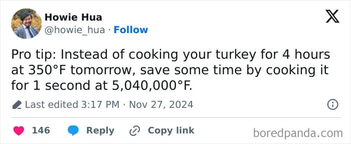 jeffscience: This is 10x the estimated temperature at the site of the nuclear blast at Hiroshima. The turkey would cease to exist in any recognizable form.