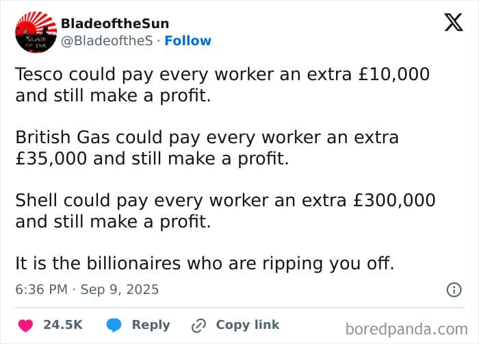 e-war-woo-woo: Tesco is slightly over on Google figures for 2024 3128 million profit, 330,000 world wide employees = 9478 per employees. So if they paid 10k extra they’d be makings loss. But they could defo do 5k extra and still make a healthy profit.