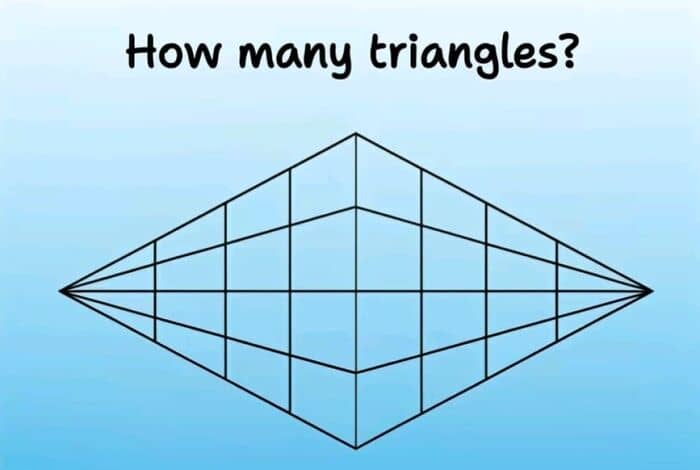 84. There are 4 tiers on each side, each tier having 10 triangles. So that’s 80. Then there are 4 wide triangles that span the left and right sides.