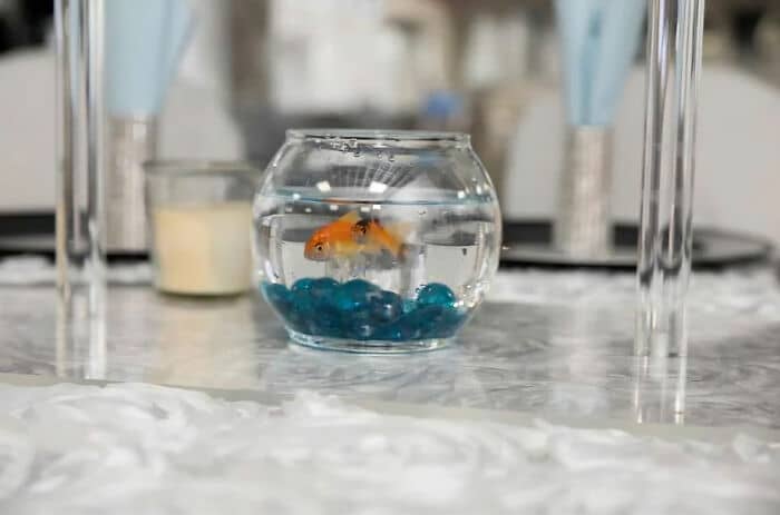 Small fish in inadequate glass containers as center pieces. We all walk into the hall and find our tables, each with a belly up, totally dead, bloated guppy floating in its little glass coffin. Lots of people lost their appetites. Marriage didn’t last a year.