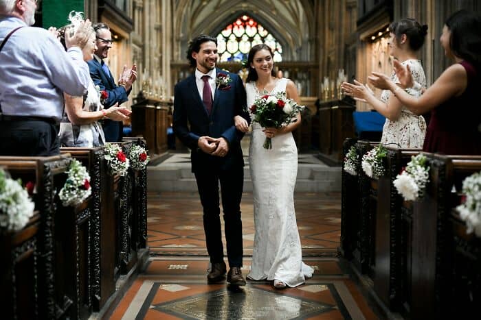 There is a “bride’s side” and “groom’s side” seating arrangement… and one side is empty.