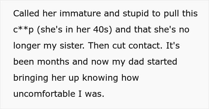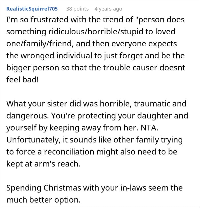There’s often pressure from other relatives to forgive, forget, and “keep the family together,” even if doing so reopens a wound you’re trying to heal.
