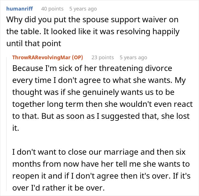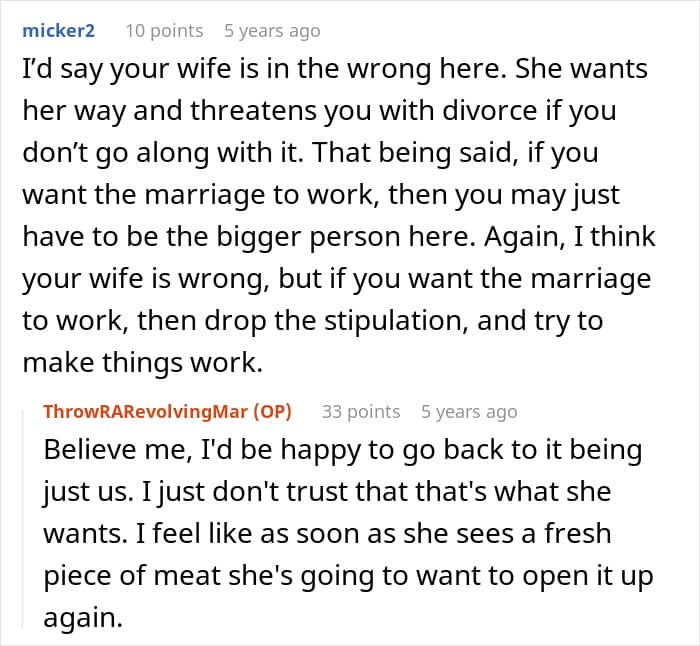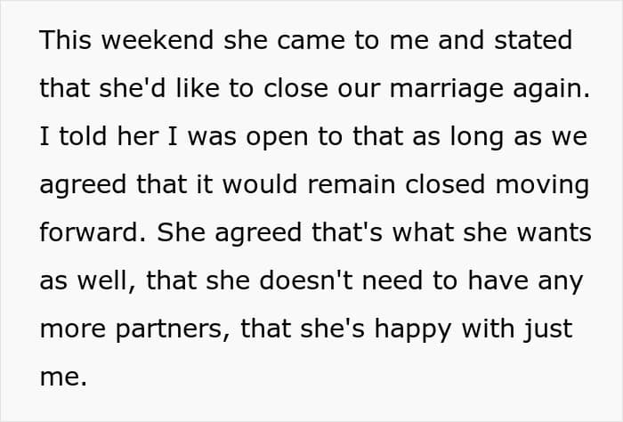 Every marriage has its ups and downs, but some rough patches hit like a full-on rollercoaster and leave people genuinely rattled. This Redditor learned that the hard way when his wife gave him an ultimatum: open the marriage or get a divorce. Not wanting to lose her, he agreed—reluctantly at first.
