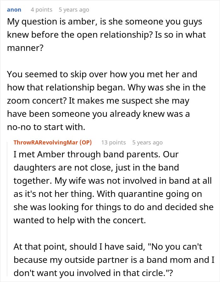 Whether people like that idea is one question. Whether it can actually function is another. And the story above is a pretty clear example of how it can go off the rails when the “agreement” is held together by pressure and unresolved resentment. But is every open setup doomed to turn into a mess?