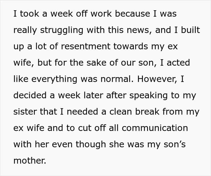 The author has since chosen to stop communicating with his ex-wife and is asking the AITA subreddit if he was wrong for doing so.