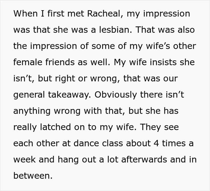 Today, we dive into a super wild story as the original poster (OP) tells us how his wife started ballet classes and got really close with the instructor (Racheal). In fact, the two started spending so much time together that OP felt completely neglected by her. They would have sleepovers at each other’s houses and even slept in the same bed.