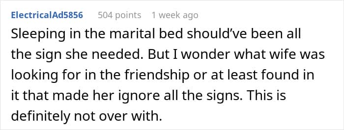 Whenever anyone tried to reason with the poster’s wife that her new “bestie” was a lesbian, she always denied it and even had a huge fight with her husband over it