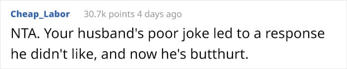However, the woman felt guilty after the argument and left an update in the post later on: “I might be TA for not waiting to get home to answer his question instead of embarrassing [him] in front of the family and making dinner awkward.” But the AITA community was very supportive of the wife, saying that she is definitely not in the wrong in this situation. As one user put it, “Joke or not, it was completely inappropriate”.