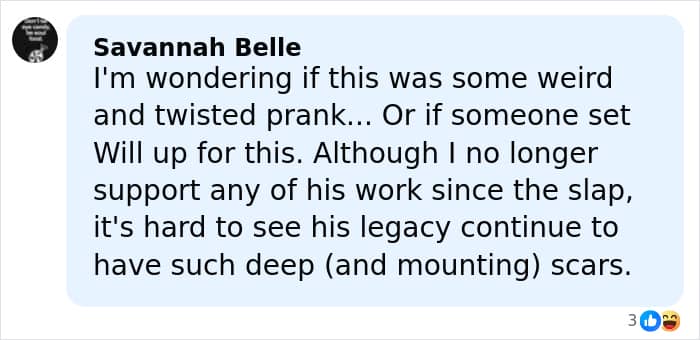 Reacting to the lawsuit’s details, one social media user remarked, “Considering what he did to Chris Rock on national television, I wouldn’t be surprised if this was true.”