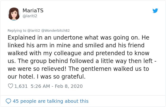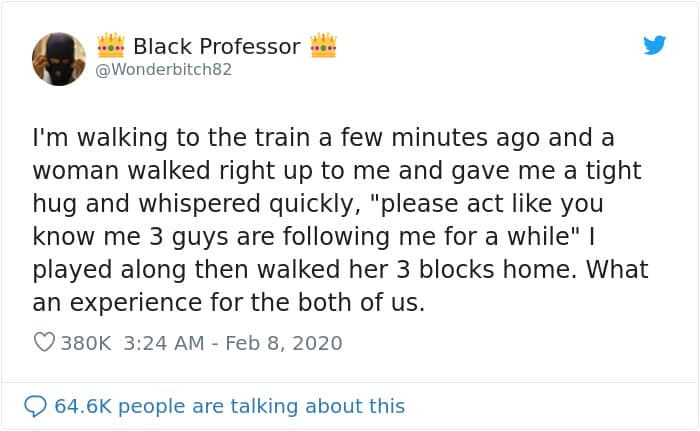 Sometimes, it means protecting a complete stranger when they’re being followed by a group of men intending to do them harm. That’s exactly what one Twitter user did when a woman in need approached him, asking for his help.